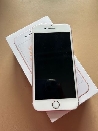 iPhone 7 en color rosa. Funciona perfectamente y tiene buena duración de batería pero tiene un pequeño picadito en la pantalla. 32 gb. viene sin cargador.