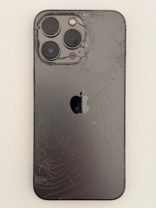 Teléfono móvil iPhone 13 Pro en color gris espacial. Tiene la parte de atrás rota, pero no afecta en NADA el funcionamiento del teléfono. La pantalla no tiene rayones, viene con un vidrio templado puesto, MAS uno de repuesto y si te gusta la funda también, esta sin usar la funda. - Pantalla de 6.1 pulgadas. - Sistema de triple cámara. - Capacidad de almacenamiento de 128 GB.