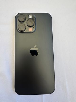 Teléfono móvil iPhone 15 Pro. - Nunca se ha cambiado nada, todo original. - Batería al 87% - Incluye cable de carga original y sus papeles. - Pequeño golpe en la tapa trasera pero no afecta en nada a su funcionamiento, se ve en la última foto - Incluyo las fundas