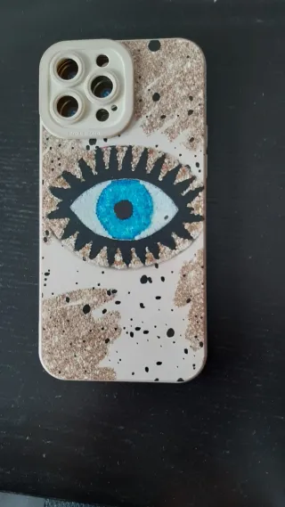 Funda para iPhone con un diseño llamativo de ojo turco y acabado brillante. - Diseño de ojo turco. - Acabado con glitter y manchas. - Protección para el móvil.