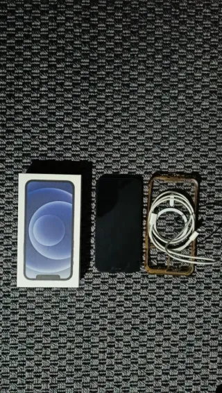 Se vende iPhone 12 en color negro, junto con su caja original y accesorios. - Incluye cable de carga. - Funda protectora transparente.