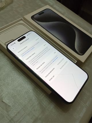 Teléfono móvil Apple iPhone 15 Pro en color plata. El movil tiene de bateria un 91% esta como nuevo todo funciona perfectamente , todas sus piezas son orginales - Pantalla de 6.1 pulgadas. - Sistema de triple cámara trasera. - Acabado en aluminio de calidad.
