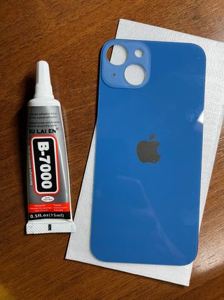 Tapa trasera iPhone 13 azul + pegamento B-7000