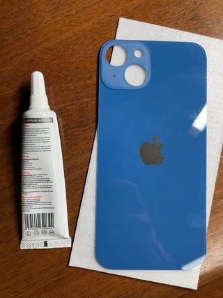 Tapa trasera de repuesto para iPhone 13 en color azul. Incluye pegamento B-7000 para su instalación. - Color azul. - Incluye adhesivo B-7000 (0.5 fl.oz / 15ml). - Pegamento multiusos.