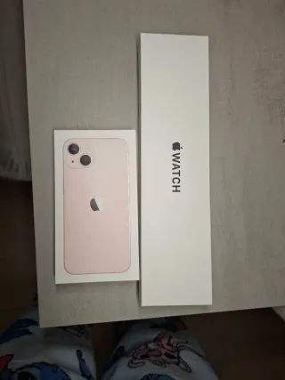 iPhone 13 rosa 84% bateria 128 GB, en perfecto estado con caja original. Regalo el apple watch SE 40 mm negro con la caja original y con varias correas y una base para cargar el reloj y el movil a la vez. El reloj funciona perfectamente, pero le falla la rueda y tiene una raya en la pantalla creo que es de sumergirlo en el agua o de darle un golpe sin darme cuenta, pero enciende y carga sin problema. El movil lo vendo porque he cambiado de movil y es una pena dejarlo en un cajon.