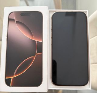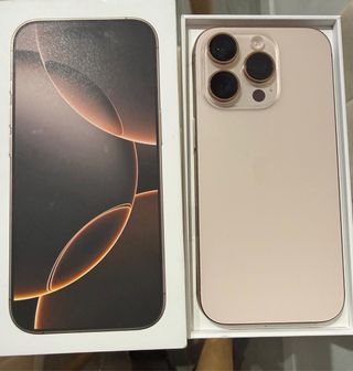 Teléfono móvil iPhone 16 Pro en color Desert Titanium. No tiene ni golgpes ni roces visibles. Bateria +87%