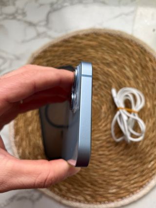 Teléfono móvil iPhone 14 en color azul y con 128GB de almacenamiento. Fisicamente esta impecable Libre de todo Batería nueva cambiada (no es la oficial) todo funciona perfectamente se puede probar antes en todo No es negociable el precio Lo entrego con cable y funda