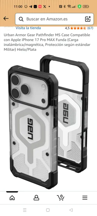 Funda protectora para iPhone 17 Pro Max. Usada 3 días. La vendo porque devolví el iPhone ya que no me hacia a ios. Incluyo protector de cámaras efecto fibra de carbono. - Diseño con patrón hexagonal. - Marco reforzado. - Zona central con logo UAG.