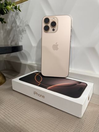 Teléfono móvil iPhone 16 Pro Max con acabado dorado y 256GB de almacenamiento. - caja y cable de carga - Batería 100 % -estado como nuevo
