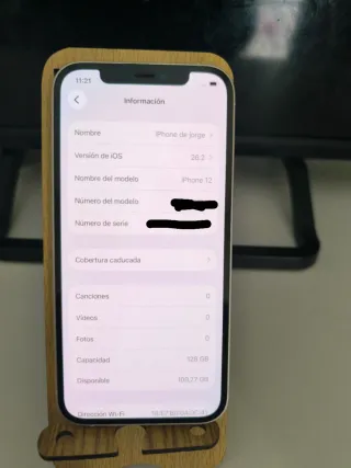 iPhone 12 en color blanco con 128GB de almacenamiento. - Capacidad máxima de batería del 73%. - No tiene ni una marca - El cable de carga esta nuevo, no se ha usado nunca