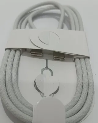 Cable de carga y datos USB-C a USB-C de Apple, ideal para iPhone y otros dispositivos compatibles. - Conector USB-C en ambos extremos. - Cable trenzado de color blanco.