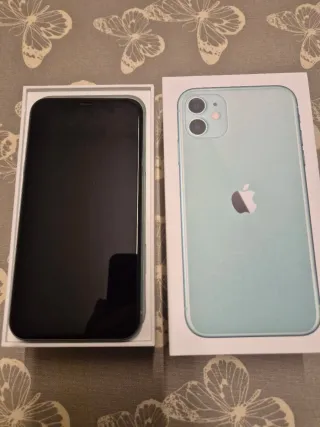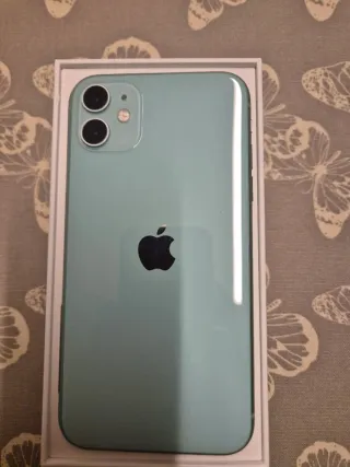 Se vende Iphone 11 de 128Gb de color verde con protector de pantalla. Incluye caja, cable cargador completo y auriculares originales. Regalo tres fundas de silicona transparentes, una de ellas con brillantina y un protector de pantalla nuevo. Buen estado en general.