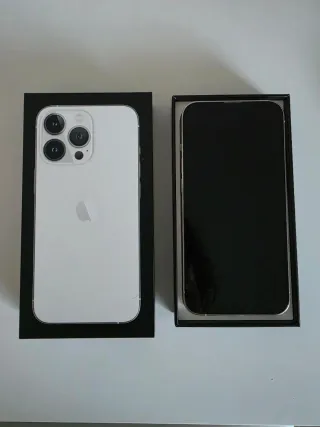 iPhone 13 Pro en color blanco con 128GB de almacenamiento. Cristal trasero roto pero funciona todo perfectamente. La salud de la batería ronda el 75%. Por eso ese precio. Lo vendo por cambio de movil.