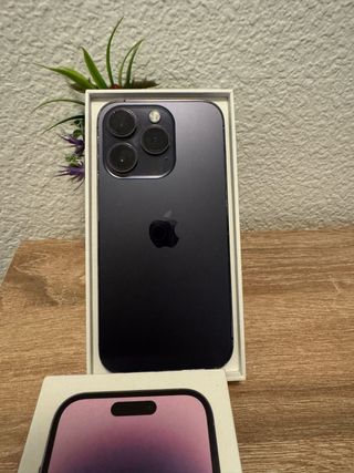 Teléfono móvil iPhone 14 Pro emcapacidad de almacenamiento de 256GB El móvil está en buenas condiciones relativamente el Marco como se observa en la foto está desgastado un poco arañado batería un 82 % de vida útil entrega personal en Málaga precio no negociable