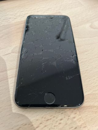 iPhone 8 en color dorado. El teléfono carga pero no enciende, ideal para piezas de repuesto. - Pantalla con grietas. - Marco dorado.