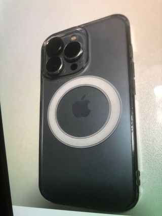 Teléfono móvil iPhone 14 Pro de Apple. La parte trasera tiene un golpe,se ve en la foto.La camara funciona perfectamente no tiene golpe.