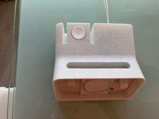 Cargador inalámbrico MagSafe de Apple. Diseñado para una carga rápida y sencilla. - Carga inalámbrica. - Conexión magnética. El cargador magsafe es original, el del Apple Watch no, pero funciona perfectamente. El soporte tiene un tercer orificio para meter otro cargador de Apple Watch y poder cargar por ejemplo los airpods. La última foto no es mía, es de google para que se vea como queda porque al vender mi iphone no puedo echar foto de como queda. Incluyo soporte , cargador iphone magsafe y cargador Apple Watch(SIN ENCHUFES)