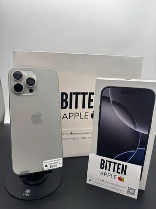 Se vende iPhone 16 Pro Max 256GB, NATURAL TITANIUM IMPOLUTO ! No tiene ningun tipo de roce o marca , muy poco uso. Practicamente LO ESTRENAS TU!!! *** Bateria ORIGINAL con Salud al 99%*** Bitten Apple Store Zaragoza ** Nos encontraras en nuestra tienda fisica en pleno centro de Zaragoza ; Calle Cinco de Marzo N°11 * Adjuntamos Factura a tu nombre & Garantia Premium Acepto cambio por otro teléfono ajustando diferencias & Puedes entregar tu telefono usado como parte del pago. ( SOLO ACEPTO CAMBIOS EN MANO / ZARAGOZA )