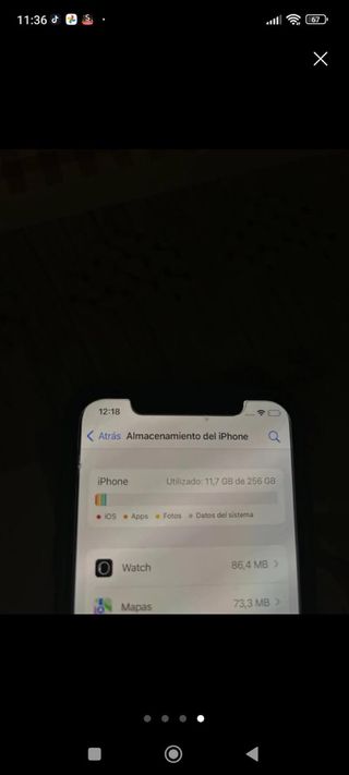 iPhone X de 256GB color negro. Móvil procedente de lote (Compras al por mayor de electrónica variada). -La pantalla tiene un pixel (ver foto 5) -El cristal protector trasera de la cámara tiene un arañazo notable, pero no afecta a las fotos (ver foto 7) -La cámara trasera parece que tiene una mota de polvo en la óptica y cuando usas la cámara se notará esa mota de polvo, sobretodo donde más se nota es en un fondo blanco (ver foto 6) -Resto de cosas parece ir bien.