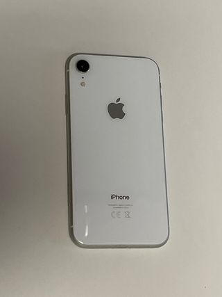 Teléfono móvil iPhone XR en color blanco. - Funciona todo perfectamente, las cámaras funcionan bien pero habría que cambiarle la batería ya que está bastante desgastada. - Capacidad de almacenamiento de 64GB. - Se entrega en la caja original, no incluye cargador