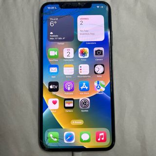 Teléfono móvil iPhone XS Max en color negro o gris espacial. se me cayo de coche y tiene la pantalla rajada y trasera tota pero funciona ok. - Pantalla de 6.5 pulgadas. - Cámara dual trasera. - Capacidad de almacenamiento de 64 GB.