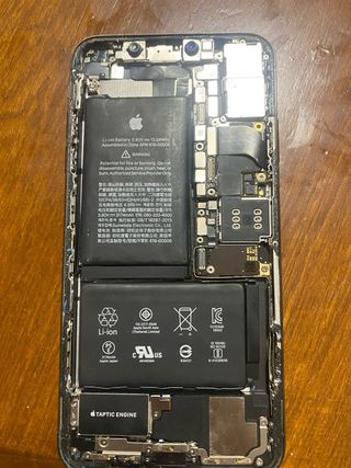 Componentes internos de un iPhone XS. - Batería Li-ion 3.80V 12.06Whr. - Taptic Engine.
