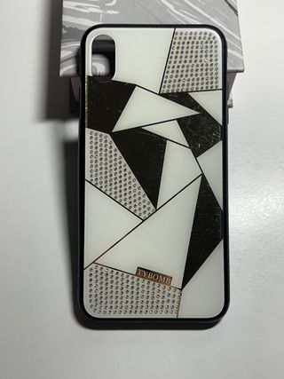 Funda resistente y de material duro. Con diseño blanco, brillos y espejo