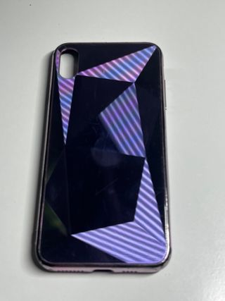 Funda morada con reflejos. Dependiendo de cómo lo pongas se ve de un color u otro. Como nueva Material bastante resistente (no es flexible)