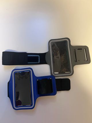 Dos fundas de móvil para salir a correr, super comodas de llevar en el brazo y muy fácil de ajustar. Color azul. Tamaño del móvil tipo Iphone 6/7 Color gris. Tamaño del móvil tipo Iphone XS. Moviles tipo Iphone 13/13pro y siguiente no caben.