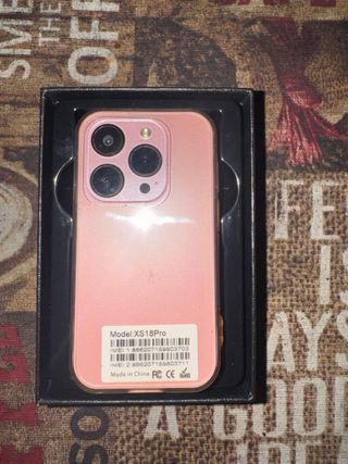 Este es un mini iPhone XS en color rosa. - Modelo: XS18Pro - IMEI 1: 866207159803703 - IMEI 2: 866207159803711 - Fabricado en China.