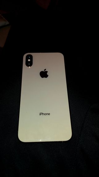 Teléfono móvil iPhone XS Max en color dorado. - Tiene protector de pantalla (se regala otro de repuesto) - el Face ID no funciona - Cámara dual trasera. - Se incluye una funda de silicona y unos auriculares con micrófono.