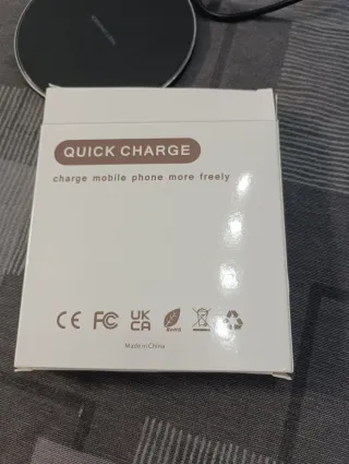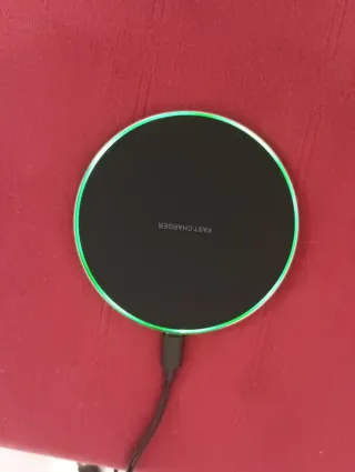 Cargador inalámbrico circular de color negro con borde iluminado en verde. - Diseño moderno y elegante. - Compatible con carga rápida.vale también para samsung