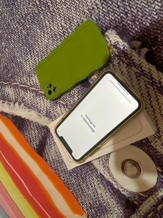 iPhone 11 con defecto en la tapa trasera y rasguños en la pantalla ideal para el trabajo ya que funciona perfectamente lleva funda verde y transparente y caja y caragador oroginal. - Capacidad de 64 GB. 120€