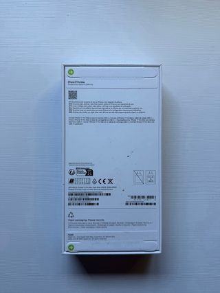Caja original para iPhone 17 Pro con capacidad de 256 GB. - Diseño elegante y compacto. - Incluye etiqueta con código QR y número de serie.