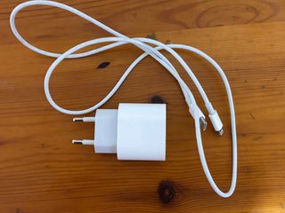Cargador original de Apple para iPhone. Incluye adaptador de corriente y cable. - Color blanco. - Conexión USB-C a Lightning.