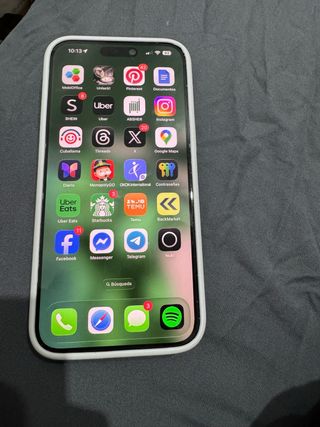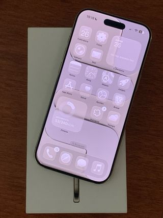 Teléfono móvil iPhone 16 Pro Max en color blanco. La batería se encuentra al 98% de su capacidad. Lo que parece roto en la pantalla es el protector, pero se quitará al darlo. Zona Alicante. - Incluye caja original. - Incluye cargador. - Incluye 4 fundas.