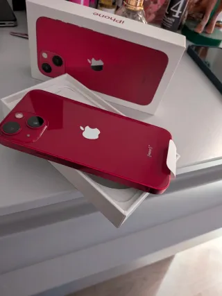 Este iPhone 13 mini en color rojo tiene una capacidad de almacenamiento de 128GB. - Diseño elegante y compacto. - Pantalla nítida y vibrante. - Cámara dual avanzada. Batería 82% aguanta el día. Todo original. Y se encuentra como nuevo. Ninguna raya en la pantalla o en el cristal de atrás. Siempre con cristal templado y funda. No envío no negociable. Sin cable.