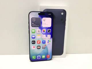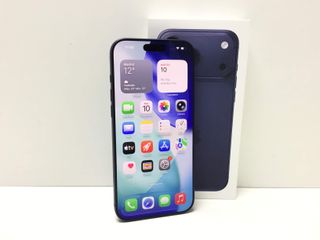 Teléfono móvil iPhone 17 Pro en color azul. - Diseño elegante y moderno. - Cámara triple en la parte trasera.