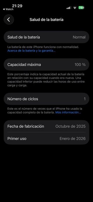 iPhone 17 impoluto de Enero 1 ciclo 100% Bteria