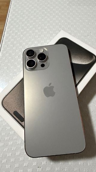 Teléfono móvil iPhone 15 Pro Max. Comprado en diciembre de 2023 Vida de la batería: 86% 256gb Cristal trasero cambiado a estrenar. Cristal delantero original en perfecto estado con protector de hidrogel desde hace dos años, si se cambia esta a estrenar. Se entrega con la caja y el cable original, también se entregan fundas y protectores nuevos.