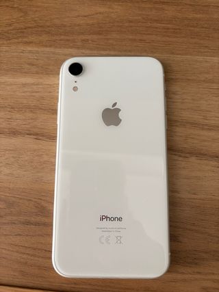 Teléfono móvil iPhone XR en color blanco. - Diseño elegante y moderno. - Cámara trasera. - Logo de Apple en la parte posterior.
