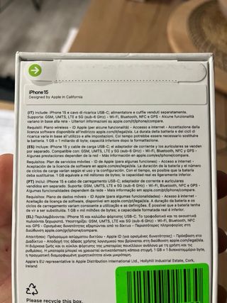 iPhone 15 de 128GB en color negro. - Modelo: iPhone 15 - Capacidad: 128GB - Color: Negro Se vende por tener de regalo el 17, de entrega con garantía y factura de compra por valor de 650 euros