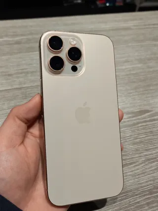 Este iPhone 16 Pro Max en color dorado ofrece una gran capacidad de almacenamiento. ✅ Garantía del primer año hasta Junio 2026 ✅ Siempre con funda y protector - Capacidad de 256GB. - Acabado en color dorado. - Caja original - Cable de carga original