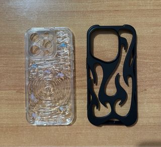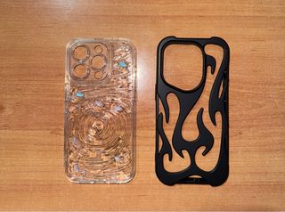 Dos fundas para iPhone 15 Pro. Una transparente efecto agua con peces de colores y otra negra con diseño de llamas. Se ha usado una sola vez la funda con peces Fundas por separado: 4€ la de peces, 3,5€ la negra Fundas juntas: 6€ Tengo más fundas de IPhone 11 y IPhone 15 pro