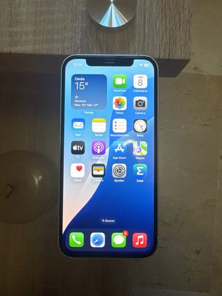 Teléfono móvil iPhone 12 en color verde agua 77% de salud de la bateria 64GB de almacenamiento Tiene ese pequeño pixel en la pantalla, por lo demas ni un arañazo