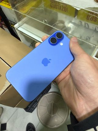Teléfono móvil iPhone 16 en color azul. - Capacidad de 128 GB. - Con pantalla templada