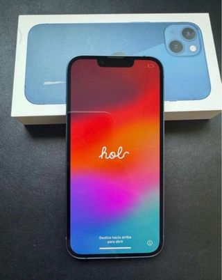 Teléfono móvil iPhone 13 en color azul. teléfono prácticamente nuevo sin roces, no le funciona el desbloqueo con la cara (face id) es lo único por eso su precio. batería y pantalla nuevas cambiadas.