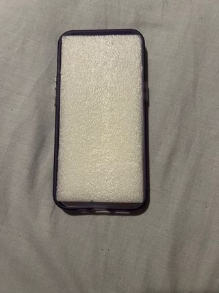 Funda para iPhone con un diseño encantador y un toque personal. - Color morado suave. - Detalle de corazón dorado en el centro. - Borde metálico dorado. - Mensaje grabado 'Smile every day'.