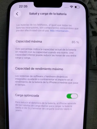 Iphone 13 con 128gb de almacenamiento, lo vendo porque he cambiado a un movil nuevo. Todo el movil va como el primer día, lo único es que tiene un 73% de salud de bateria y el cristal de la camara trasera agrietado (de ahi el precio). Tambien cuando vibra hace un poco mas de ruido porque tiene un tonillo medio suelto de lo que hace vibrar el movil. Pero nunca ha sido abierto porque no me interesaba cambiarlo, nunca me ha molestado eso. PRECIO NEGOCIABLE