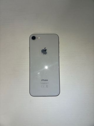 iPhono 8 que funciona correctamente. Capacidad: 128GB Salud de la bateria: 78% Tiene una pantalla protectora puesta. Tiene el cristal trasero estropeado como se ve en la foto. En el precio se incluye la funda negra.
